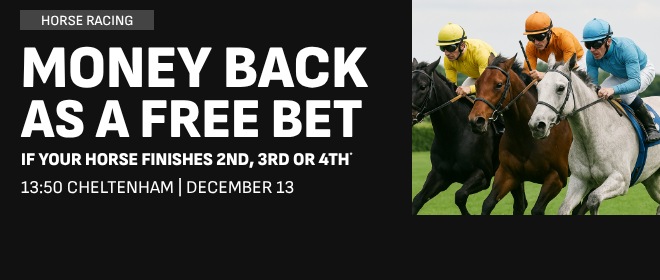 *Max Free Bet £10. 1st cash bet up to £10 must be placed within 48hrs of selected race/s (main market, ex antepost & specials). Win part e/w bet. Free Bet: use in 7 days on sportsbook. Stake not returned. T&Cs apply.